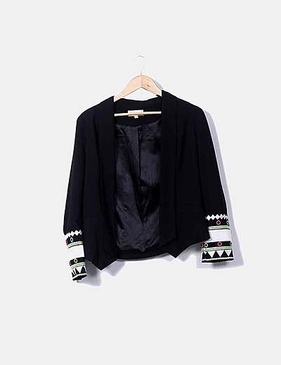 MD WomanMangas étnicas de blazer preto