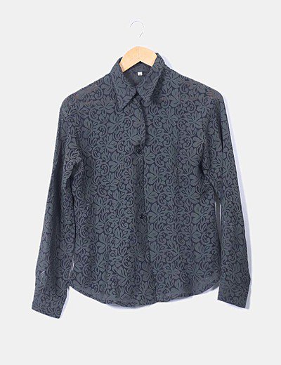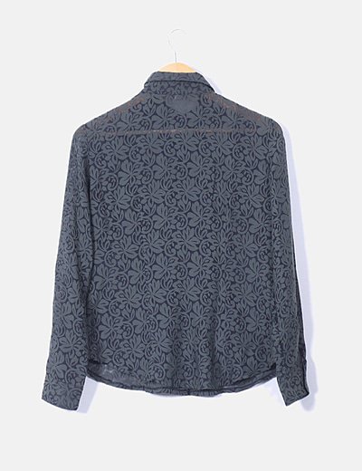NoNameCamisa verde semitransparente estampada